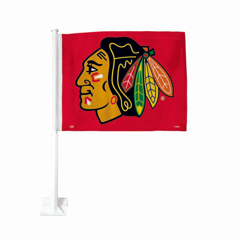 Declare your loyalty with this Chicago Blackhawks car flag!