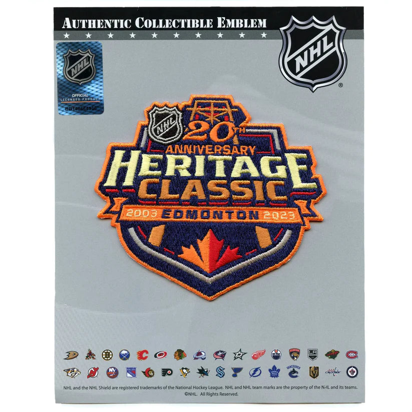 This is the official commemorative patch for the 2023 Heritage Classic as worn on-ice and is officially licensed by the NHL.