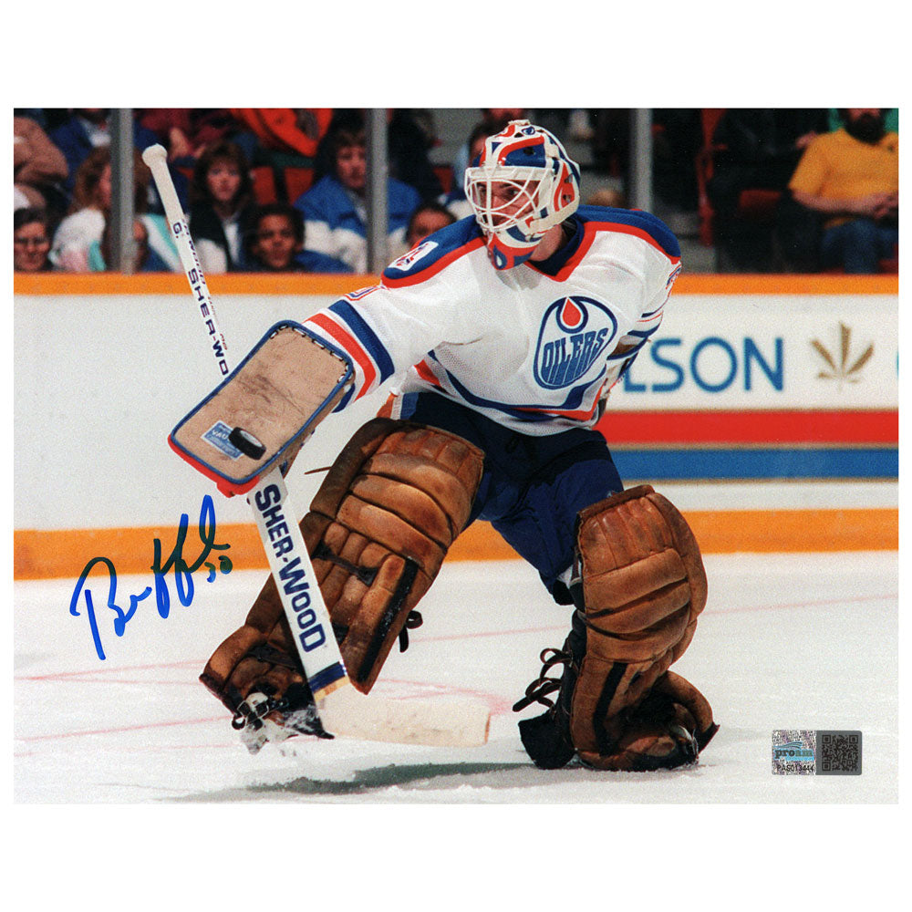 Bill Ranford Edmonton Oilers White Action "Blocker Save" Autographed 8x10 photograph