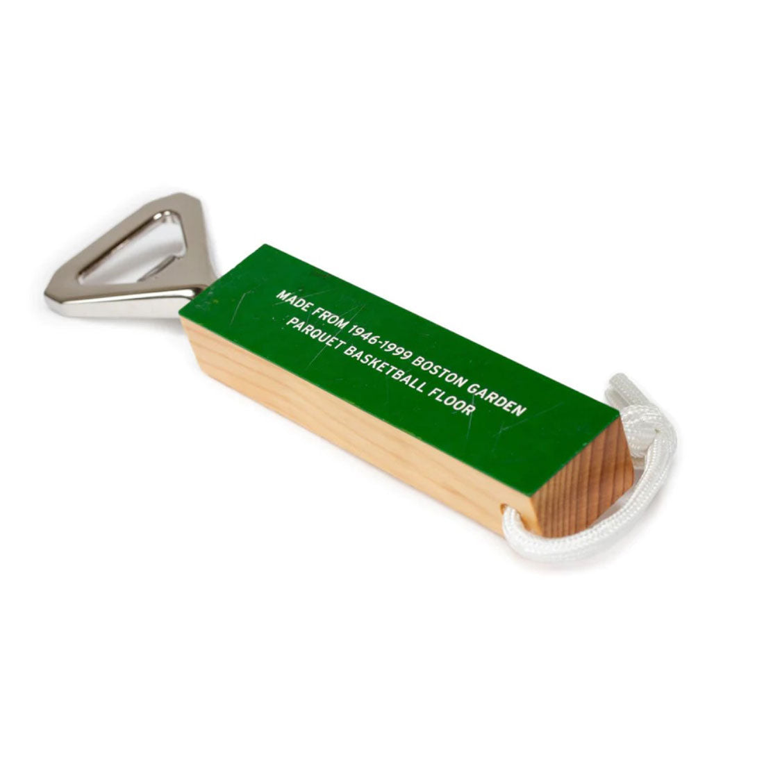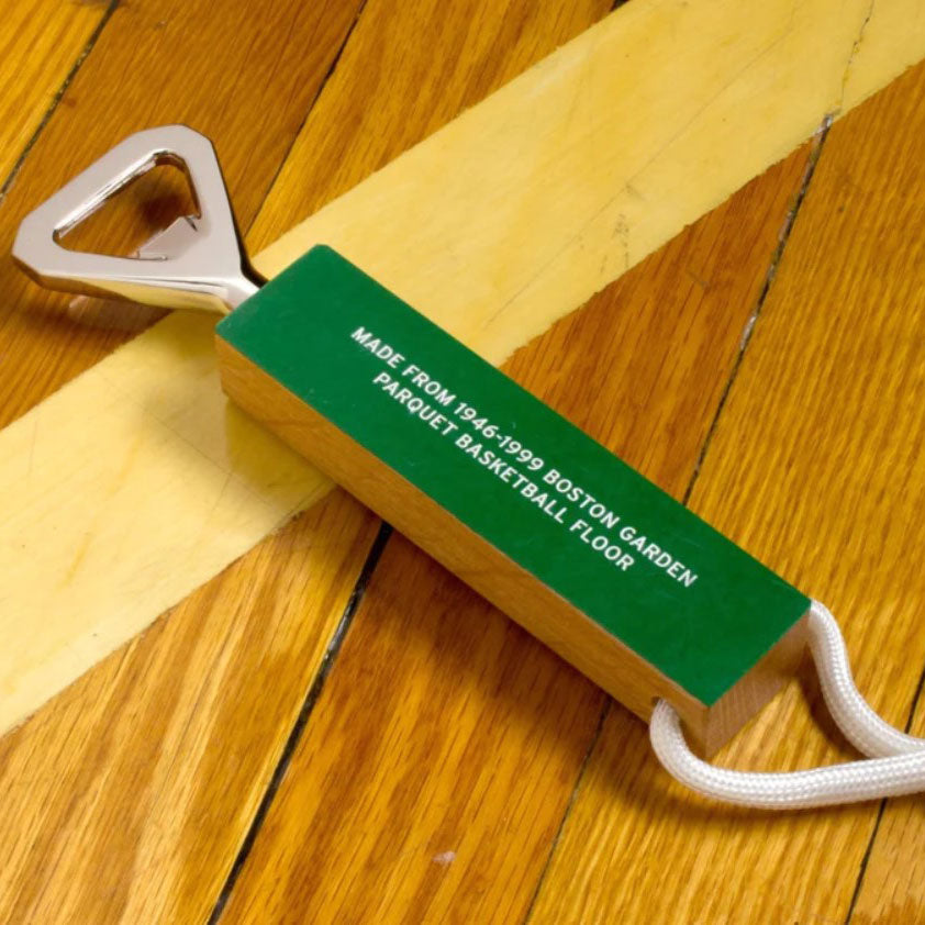 - This bottle opener is crafted from authentic Boston Garden parquet basketball floor which was in use from 1946-1999.