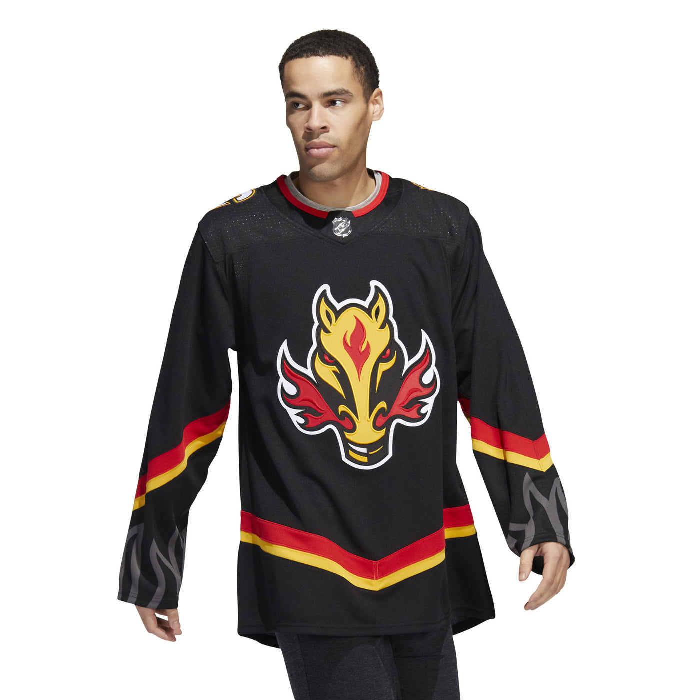 "Launched in 1992, NHL third jerseys are now such a staple many teams post their alt-jersey schedule so that fans can suit up in tandem. Pull on this adidas Calgary Flames third hockey jersey and join in the fun. The look stays authentic, but has a fresh feel for fans and players alike.