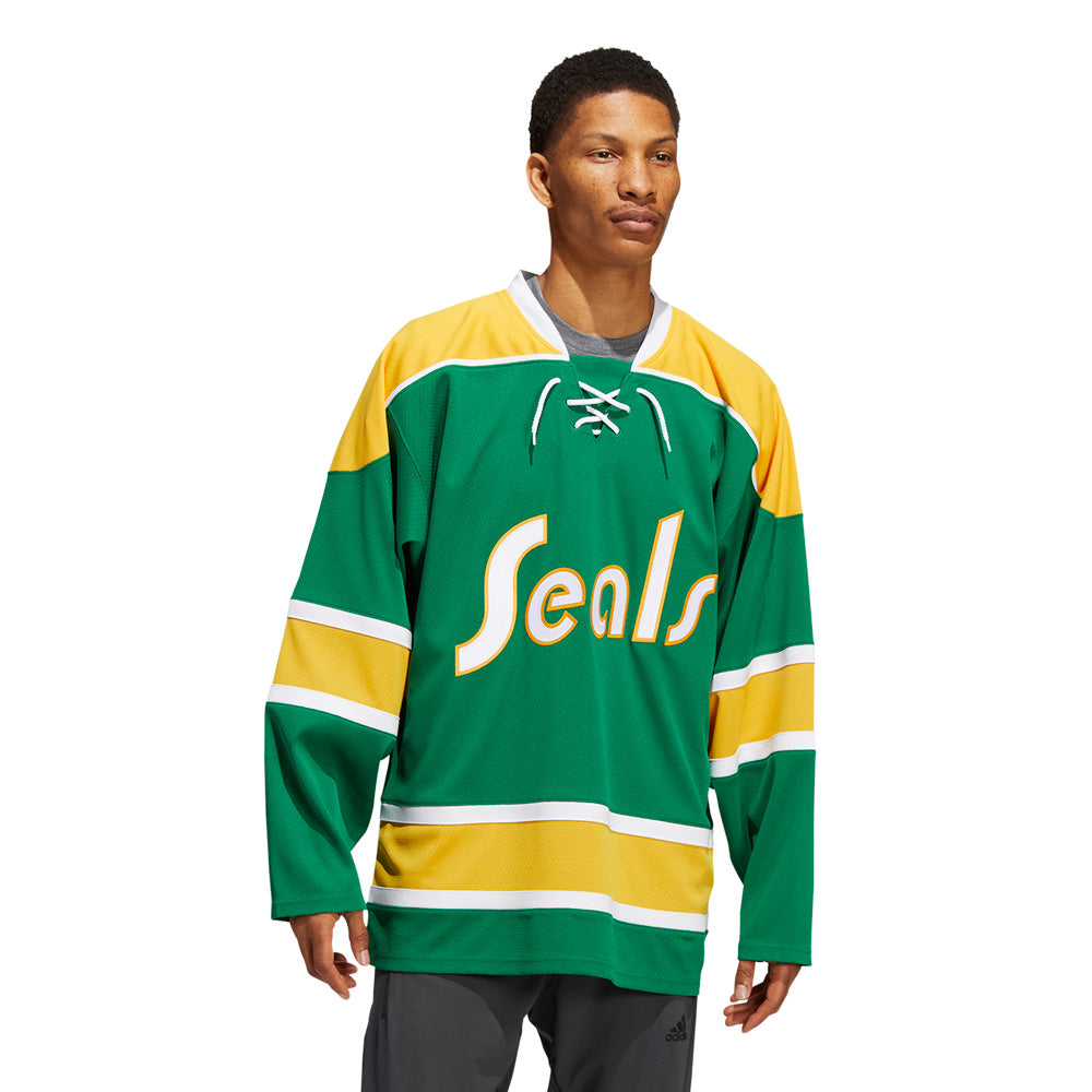 Take a trip back in time with the 1970 California Golden Seals jersey! Part of adidas' Team Classics collection, this jersey features the classic design - made with modern materials. The jersey is made with adidas' 100% recycled AEROREADY material, making them comfortable, breathable, and sustainable.