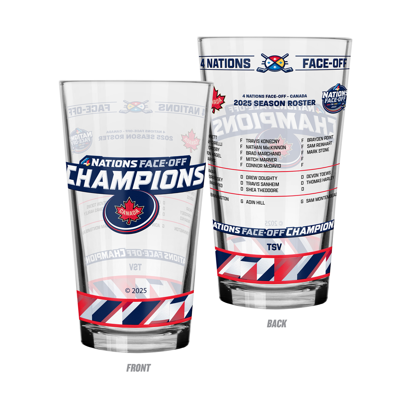 Canada Champions 4 Nations Face-Off 2025 Roster 16oz Mixing Glass
