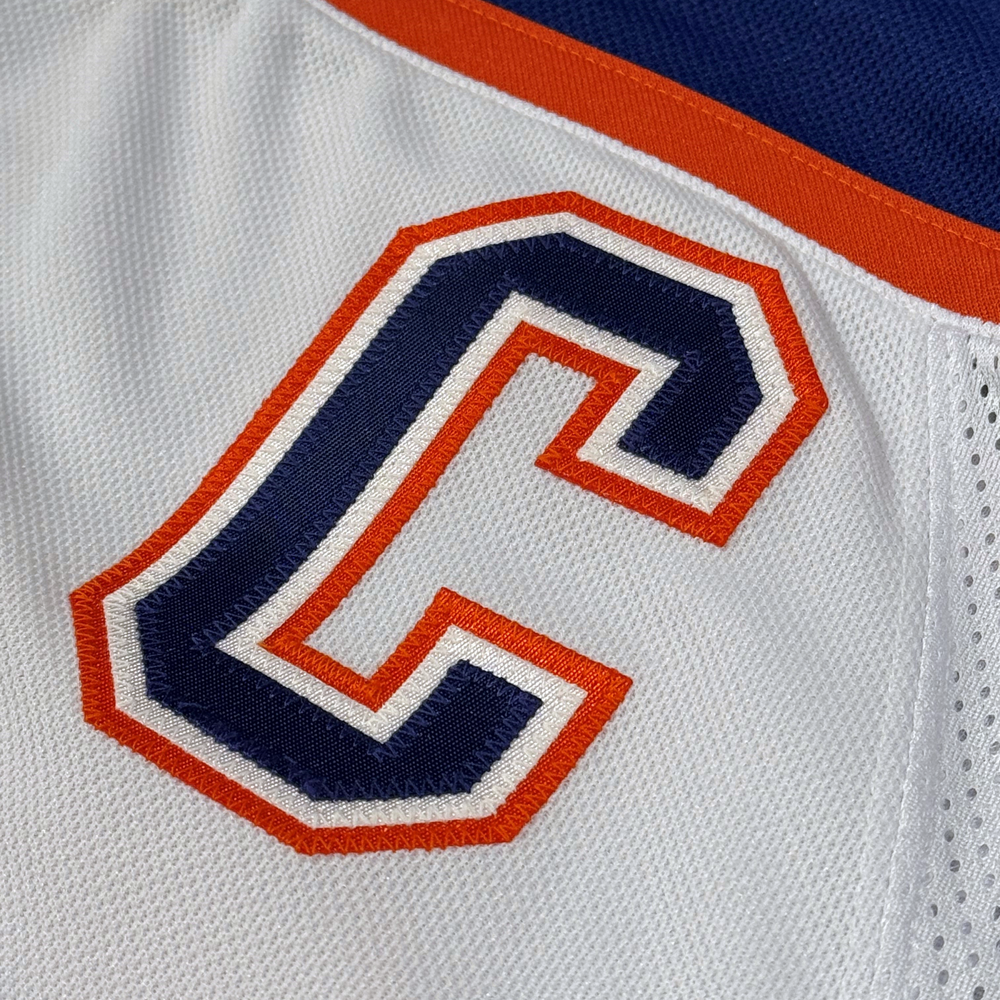 Jerseys are completed with on ice sewing - done exactly as players wear on the ice! Completely handsewn in Canada, with numbers and Captain's "C" finished in triple-stacked pro twill.