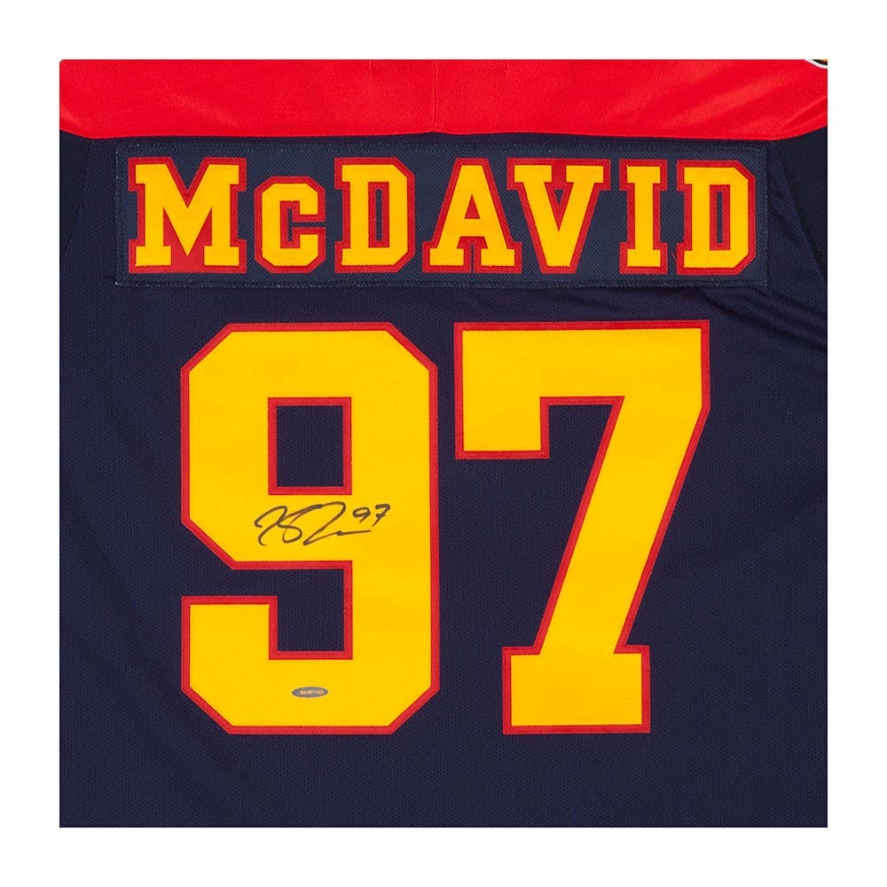This jersey was hand signed by Connor McDavid, and will deliver with an Upper Deck Certificate of Authenticity and hologram.