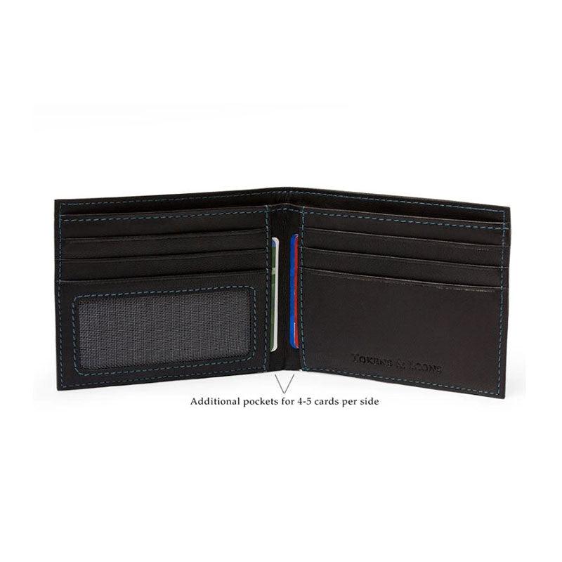 - Ample storage: two bill compartments, mesh ID pocket and five card slots inside along with two interior pockets for an additional 4 to 5 cards per side.