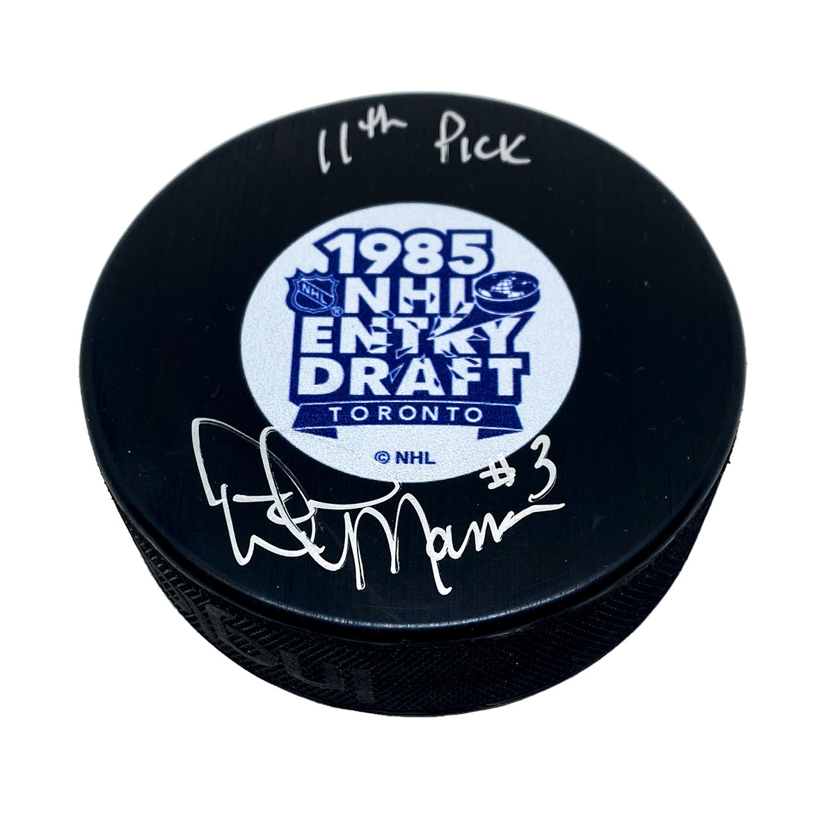 Dave Manson NHL Draft 1985 Toronto Autographed Puck with "11th Pick" inscription