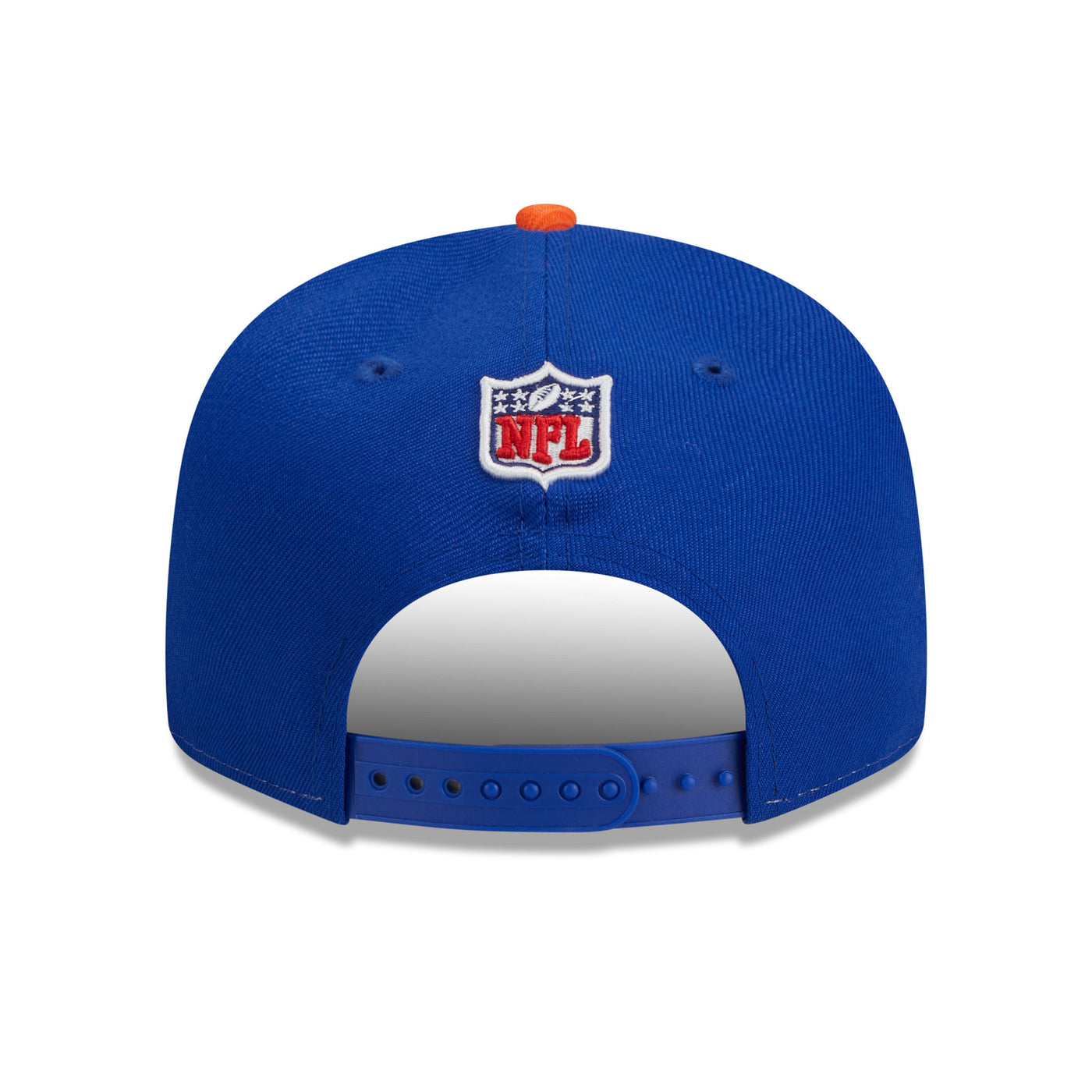 The Denver Broncos 2023 Sideline Historic 9FIFTY Snapback features an embroidered Broncos historic logo at the front panels with the official NFL Shield above a snapback closure at the rear. Additional details include a patch with the team's established year at the right-wear side and a gray undervisor.
