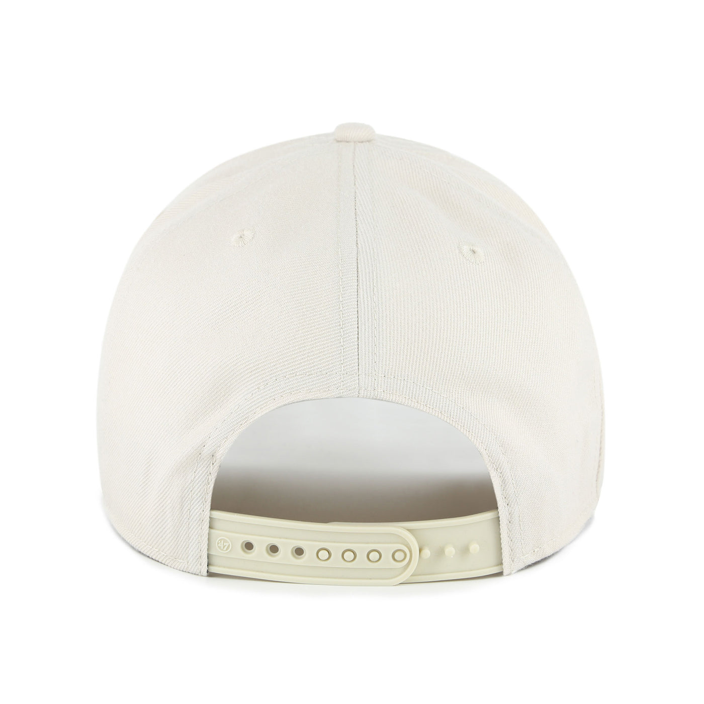The Edmonton Oilers Alternate Logo Ghost Ballpark '47 Offside Cap features a structured dart crown with buckram panels, allowing it to maintain its shape. The cap has a mid crown design, raised front embroidery of the Oilers Alternate / Third logo, and a snapback closure.