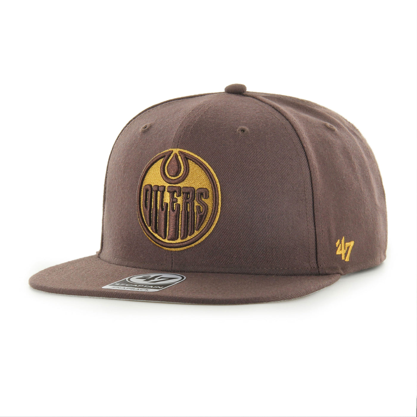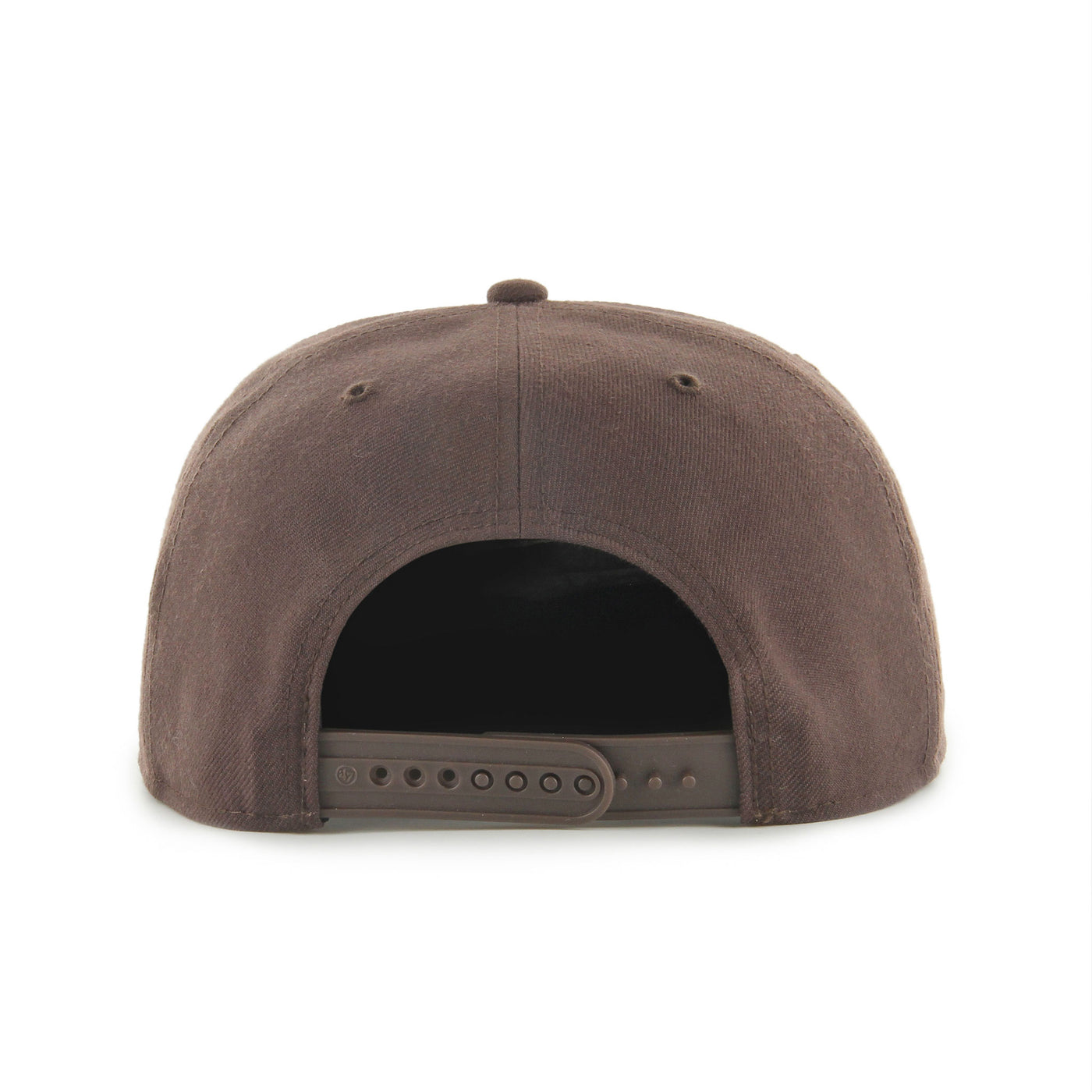 The Chocolate '47 CAPTAIN has a structured crown, flat visor, and an adjustable snapback with raised embroidery on the front.