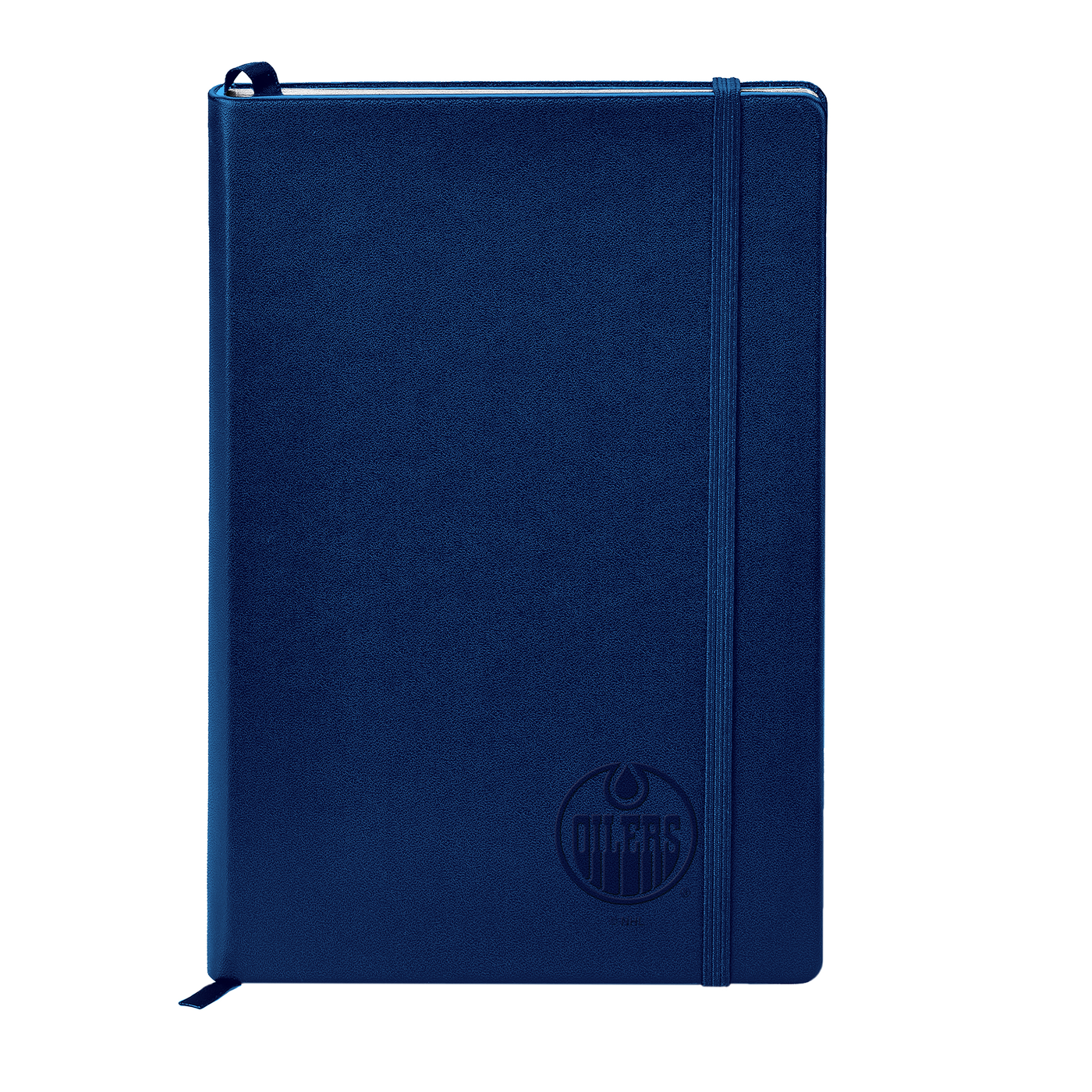 Protect your notes in style with the Edmonton Oilers Blue Embossed Journal. The Oilers logo is prominently embossed on the lower right front cover, making this a must-have for true fans. Keep your journal secure with the elasticized strap closure and always find your place with the attached bookmark ribbon.