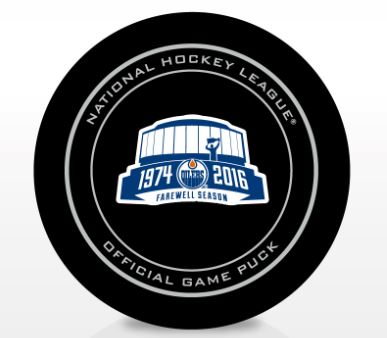 This puck features the 2015-2016 Rexall Place Farewell Season logo.