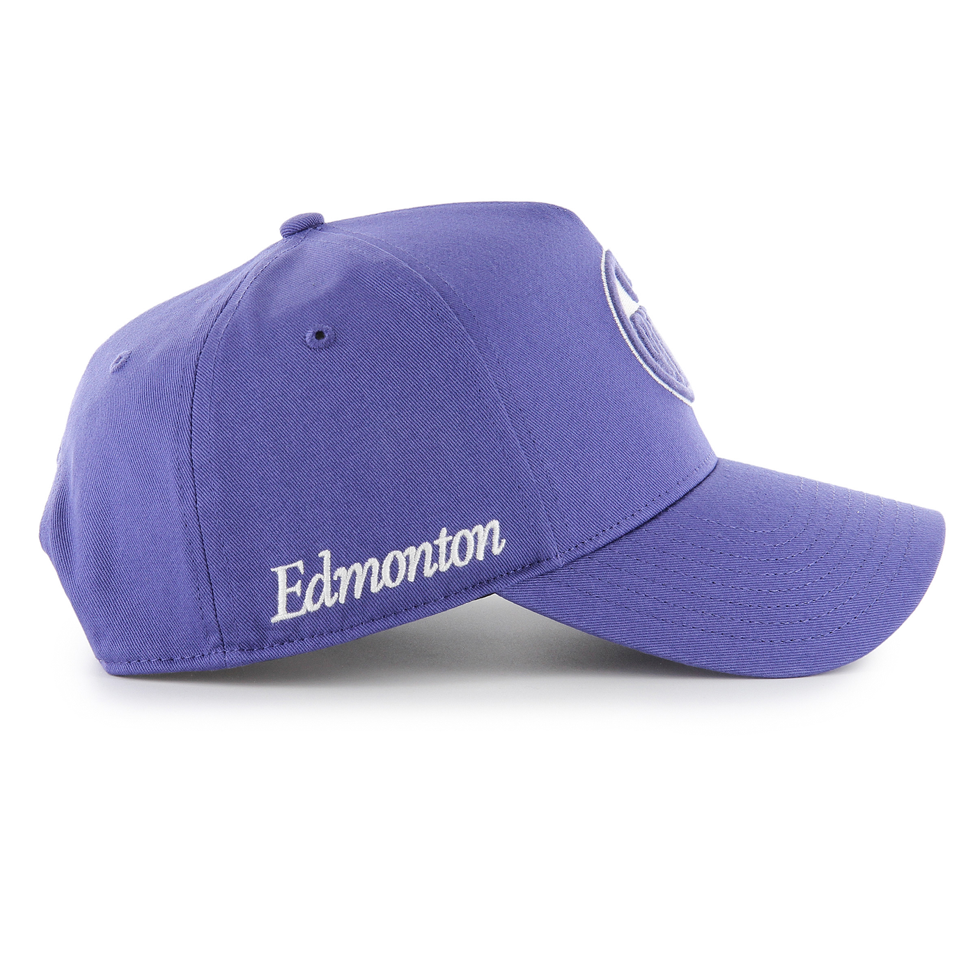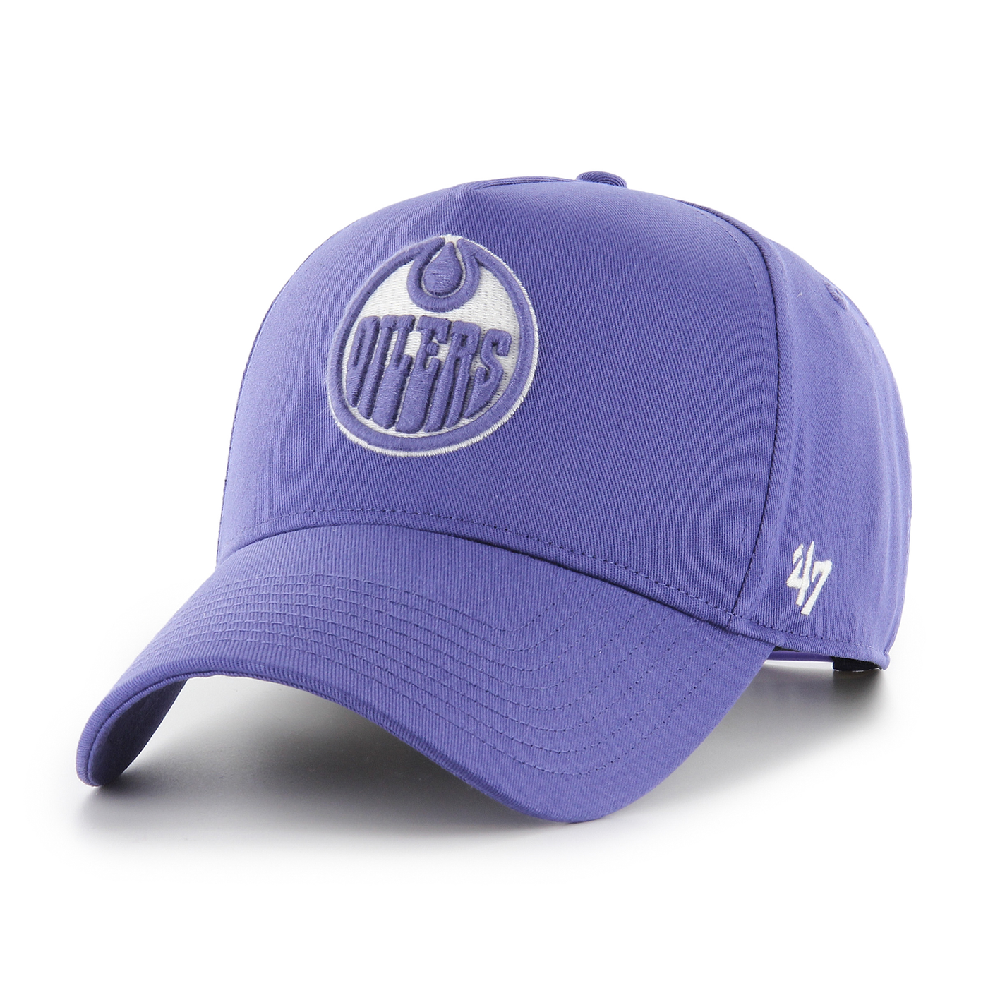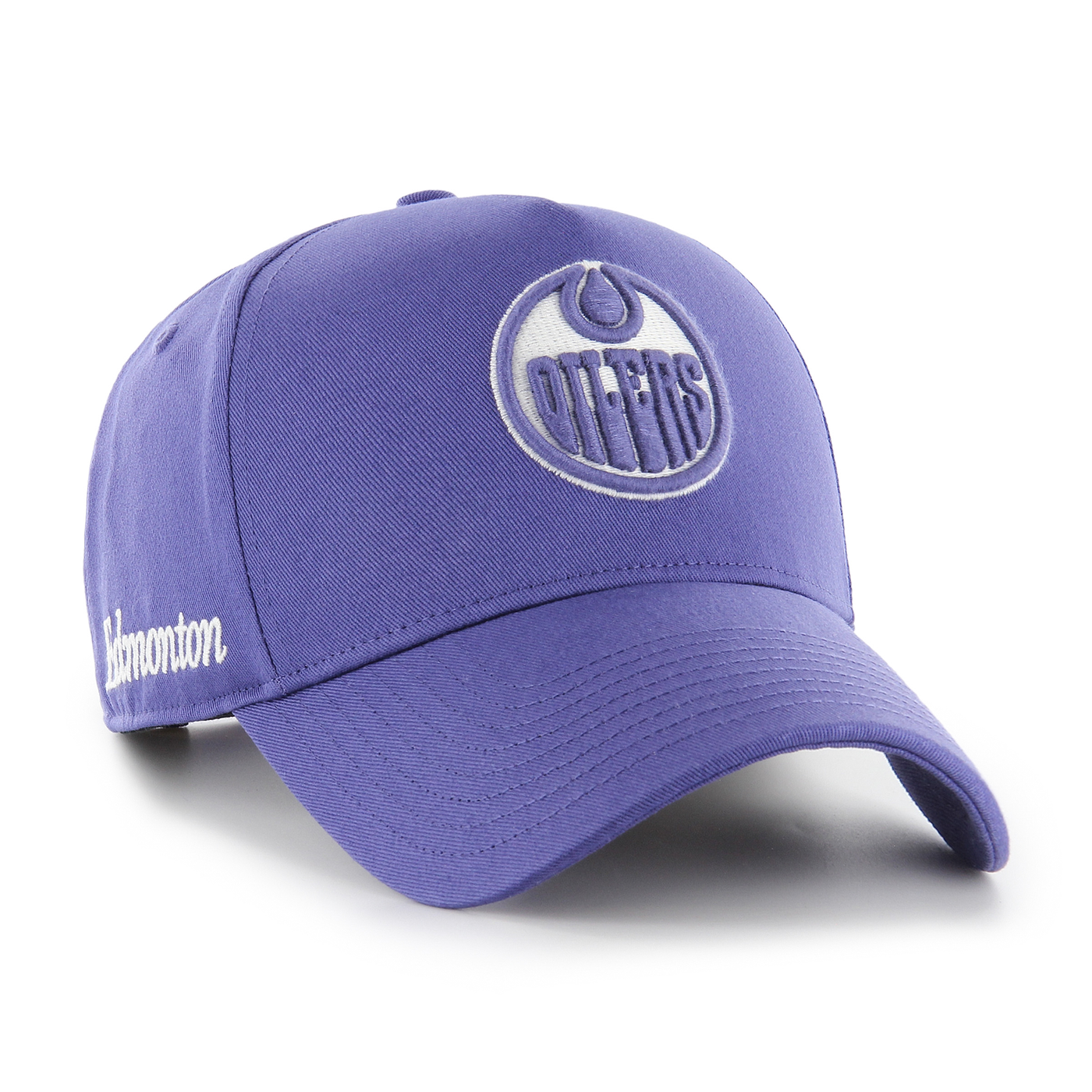 The Edmonton Oilers Foundation '47 Offside Cap features a structured dart crown with buckram panels, allowing it to maintain its shape. The cap has a mid crown design, raised front embroidery of the Oilers logo, flat team wordmark on the right side and a snapback closure.