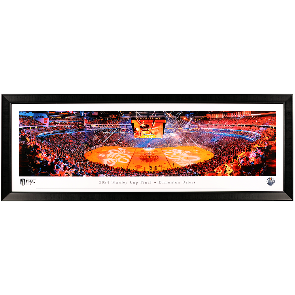 This panoramic print features Rogers Place in Edmonton; as the Oilers prepare to step on the ice in the 2024 Stanley Cup Final.