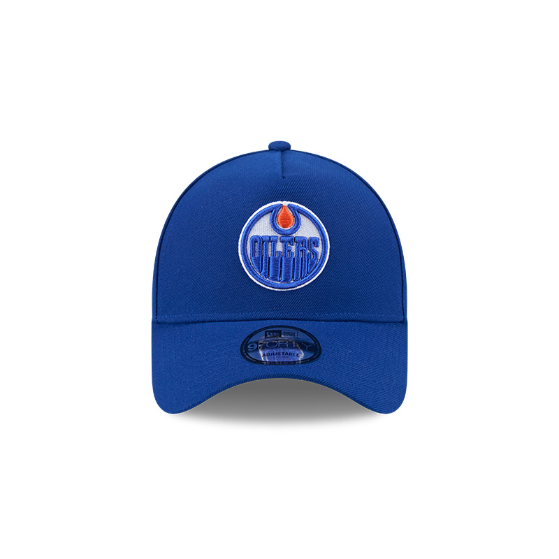 The Edmonton Oilers 9FORTY A-Frame Snapback features an embroidered Oilers logo at the front panel with a snapback closure at the rear, and a gray undervisor.