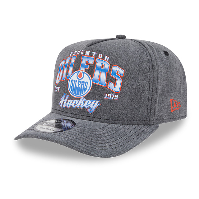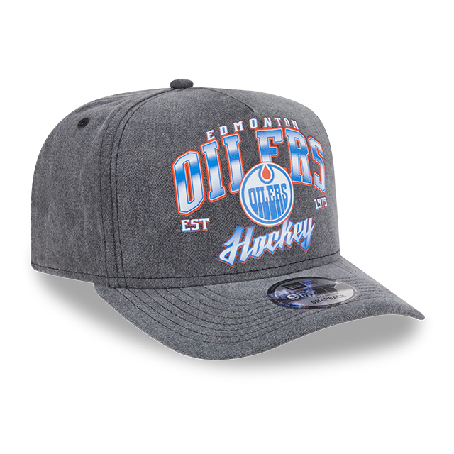 Throw it back with this Edmonton Oilers Throwback Washed A-Frame 9FIFTY Snapback Hat from New Era. The five-panel construction with mid and rear eyelets ensures breathability, while the pinched A-frame front panel adds a touch of vintage style. This hat features a screen-printed team wordmark on the front, making it clear who you're rooting for.