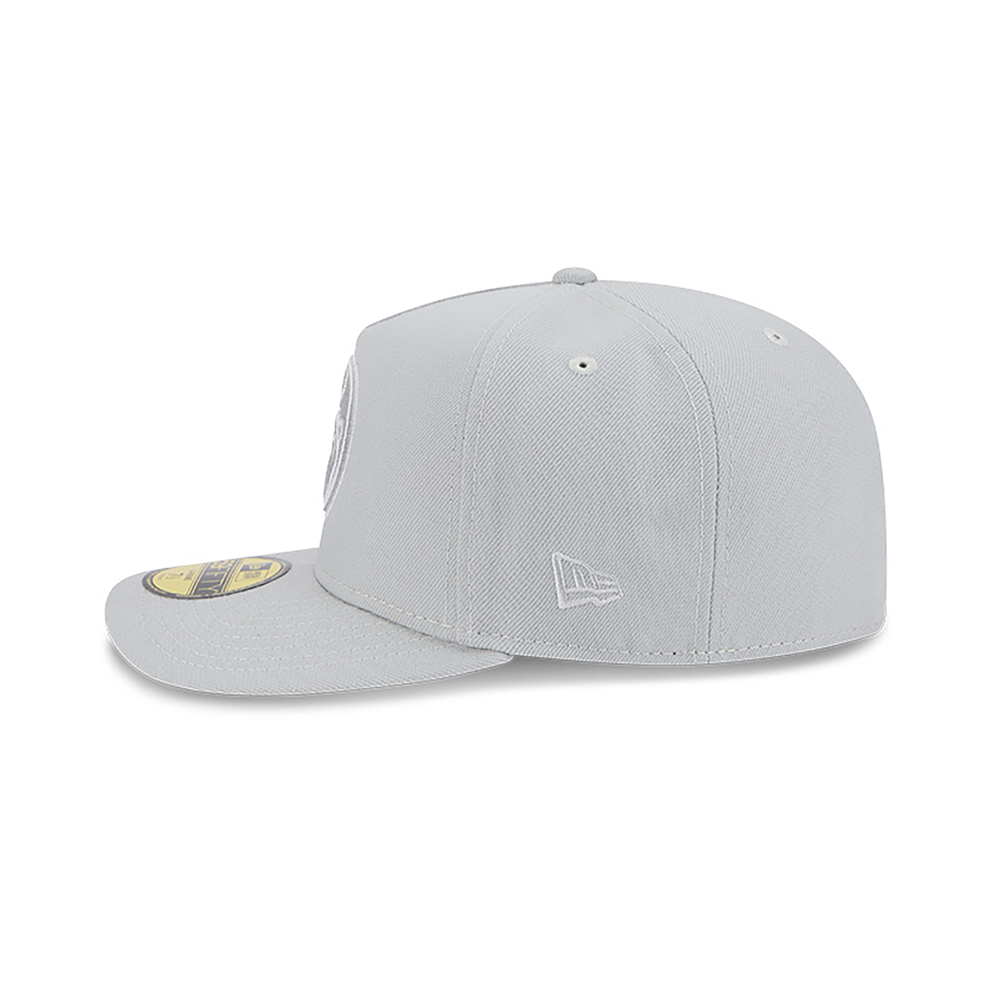 Complete your Edmonton Oilers game day look with this New Era Color Pack Stone Grey Tonal 59FIFTY A-Frame Fitted Hat. The 59FIFTY A-Frame features a structured crown with a pinched front panel. The five panel design allows for the logo to be embroidered across the front panel wit no seams or stitching.