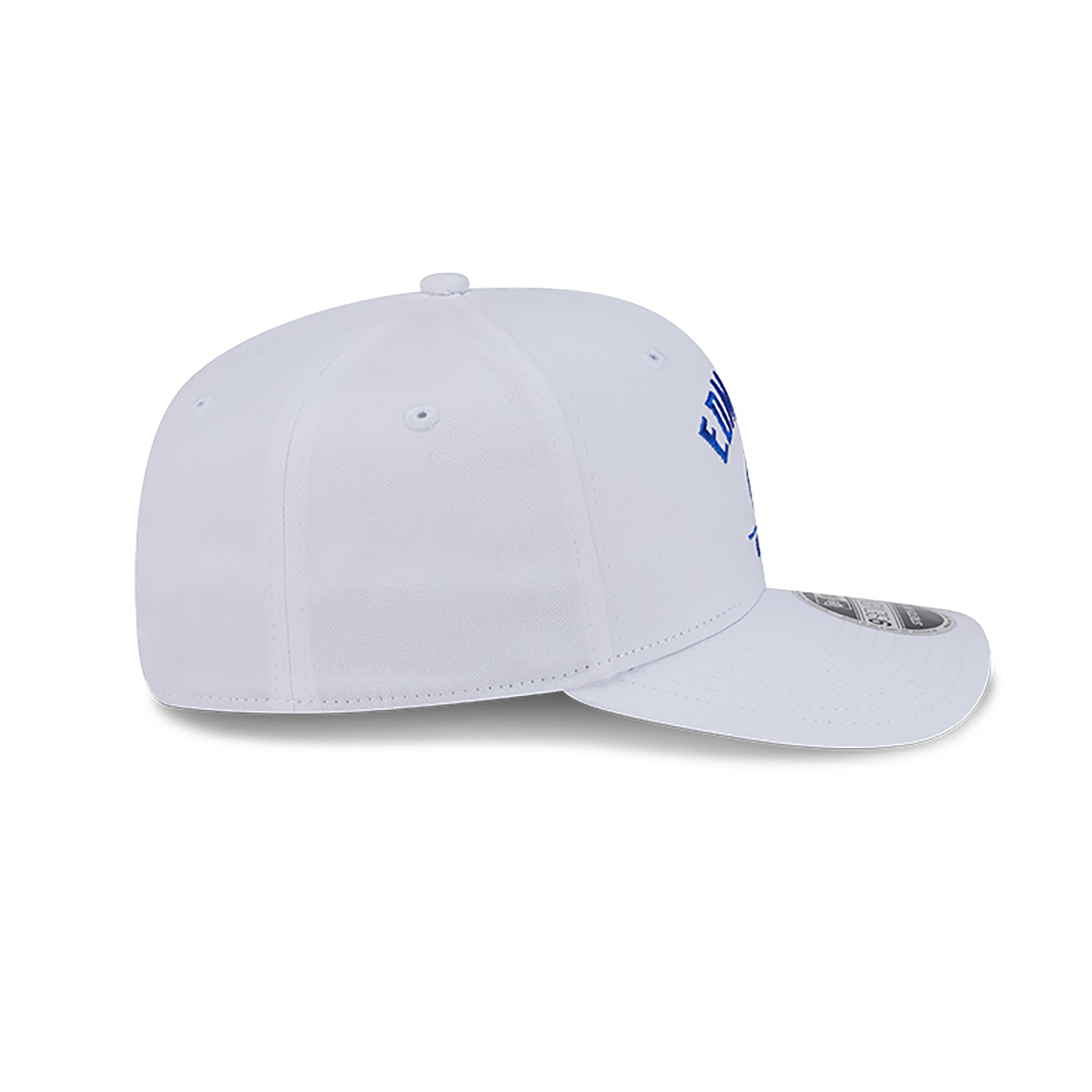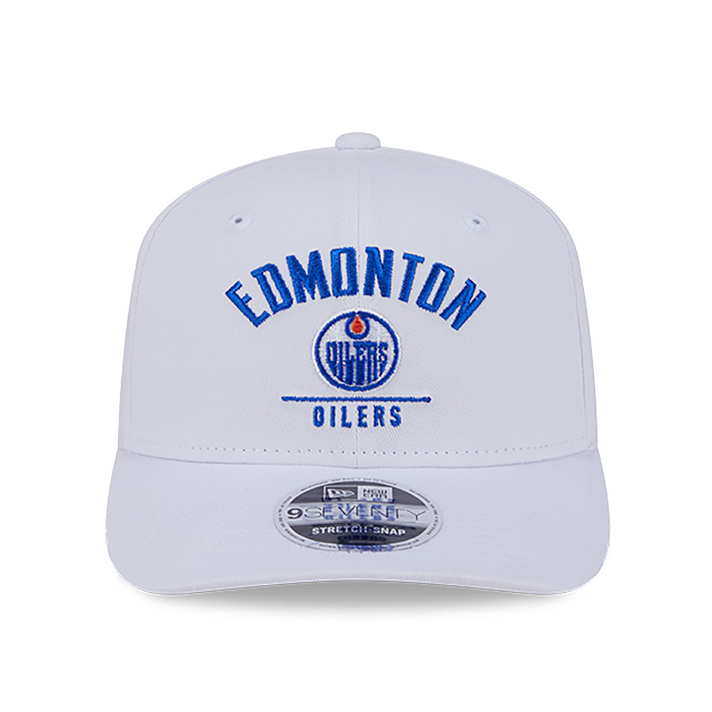 The Edmonton Oilers Logo Wordmark 9SEVENTY Stretch-Snap Hat features an embroidered Oilers logo and Wordmark at the front panels. Additional details include a snapback closure at the rear with and a white undervisor.