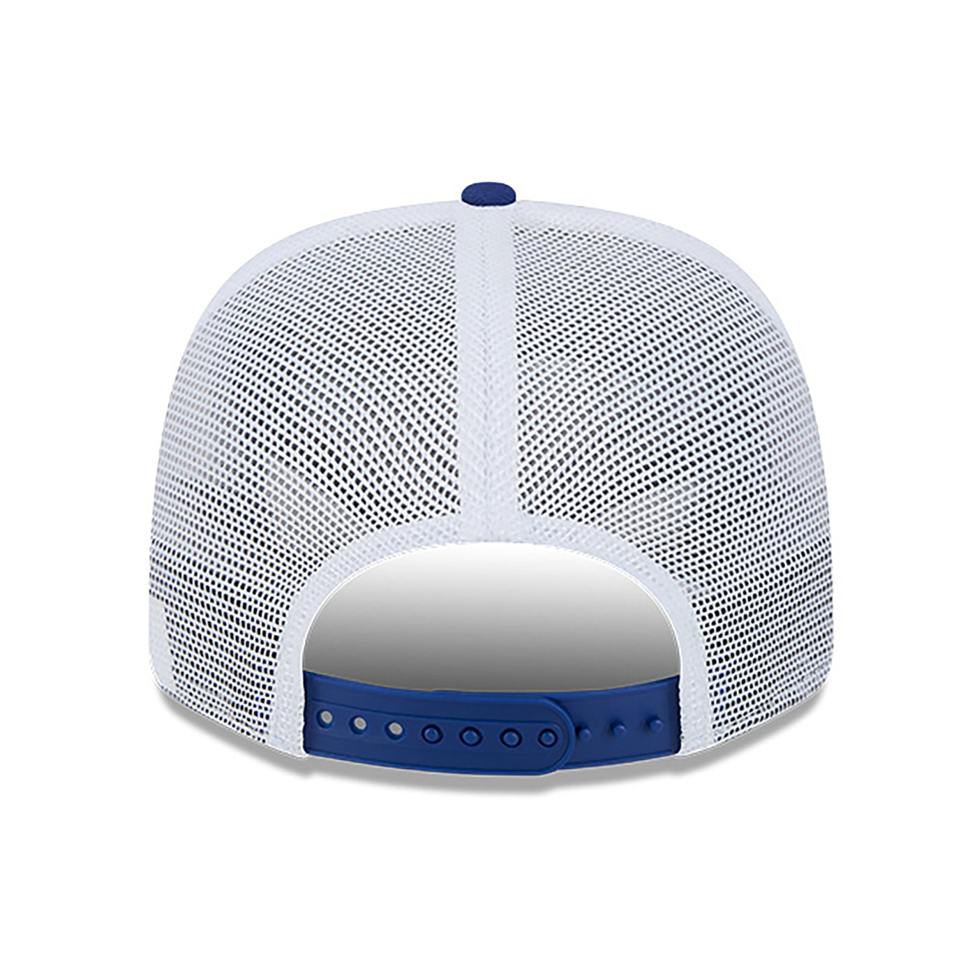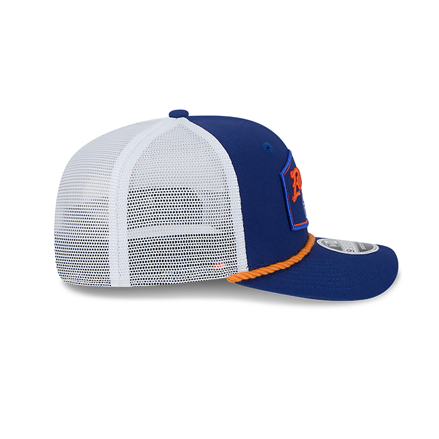 The Edmonton Oilers Patch 9SEVENTY Trucker features an embroidered Oilers logo and wordmark patch at the front panels with a mesh back and snapback closure at the rear.