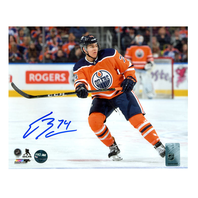 Ethan Bear Edmonton Oilers "Orange Action" Autographed 11x14 Photograph.
