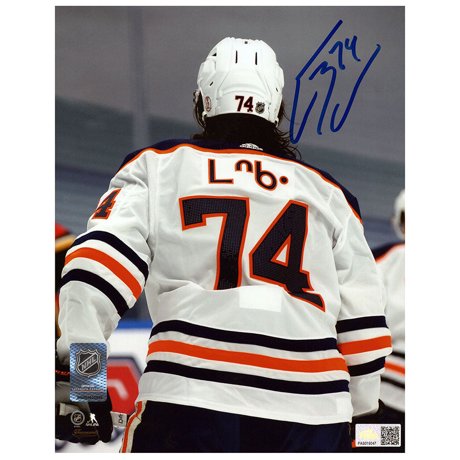 Ethan Bear Edmonton Oilers Road White Action "Cree Syllabics" Autographed 8x10 Photograph.