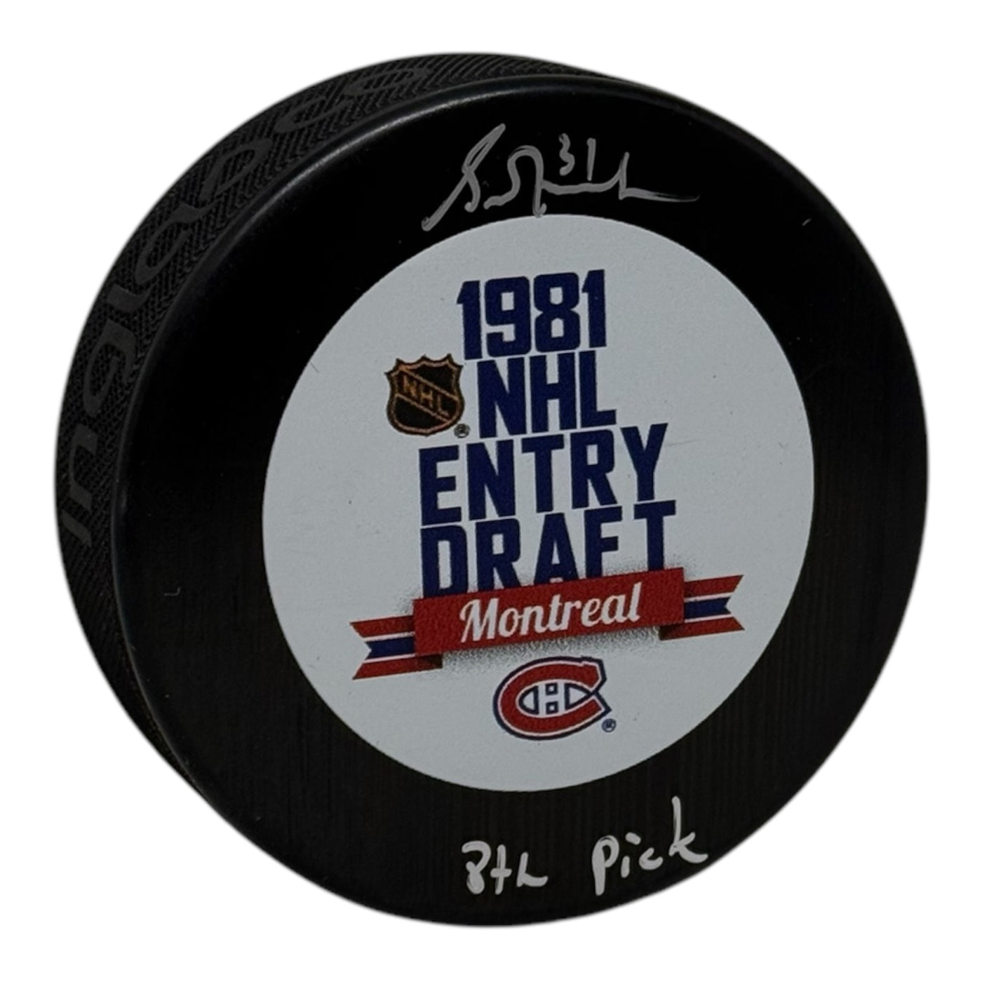 Grant Fuhr 1981 NHL Entry Draft Autographed Puck Inscribed "8th Pick"