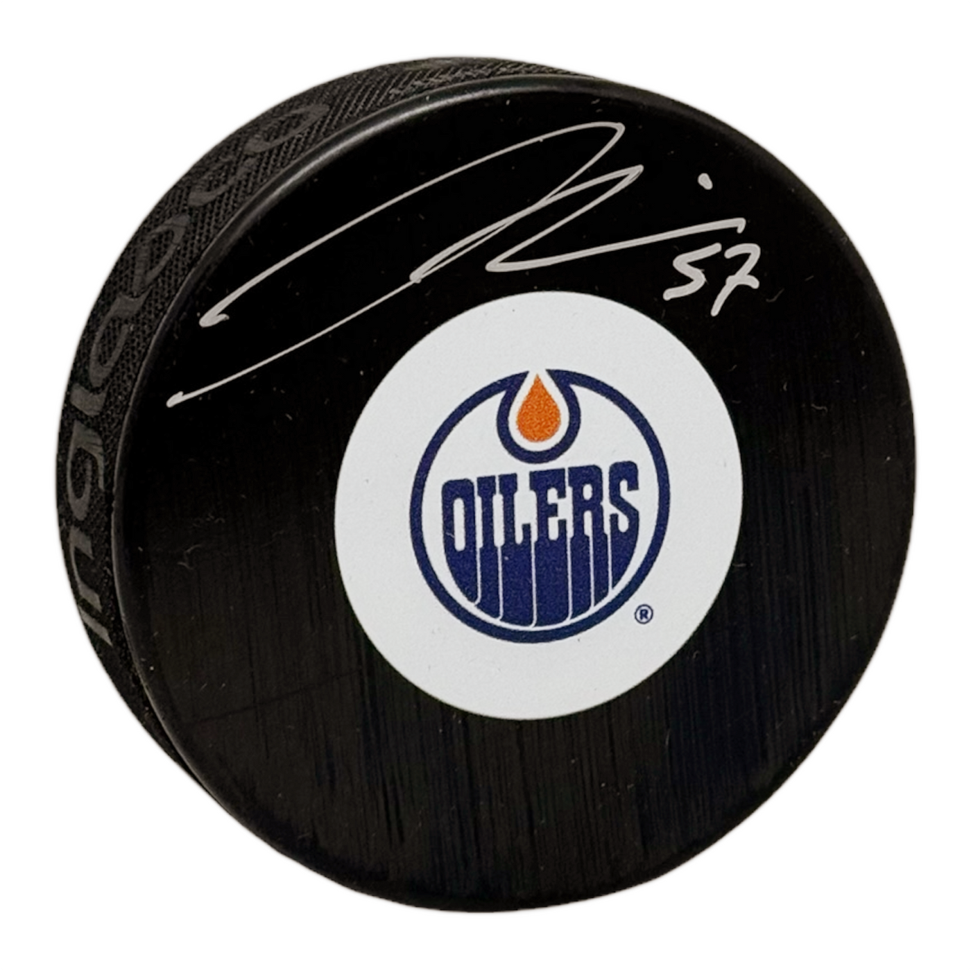 James Hamblin Signed Edmonton Oilers Puck Medium Size Logo