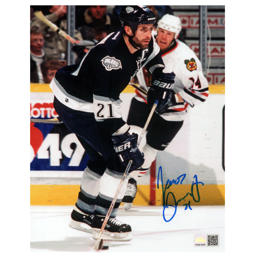Jason Smith Signed Edmonton Oilers Navy Action 8x10 Photo McFarlane Third