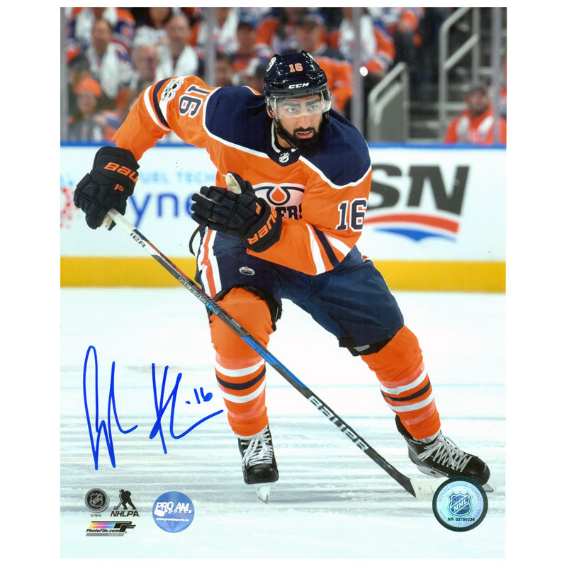Jujhar Khaira Edmonton Oilers Orange Action "Looking Up Ice" Autographed 8x10 photograph