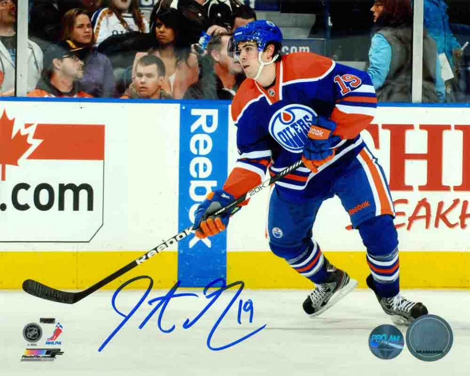 Justin Schultz Edmonton Oilers Blue Action "Puck Move" Signed 11x14 Photo.