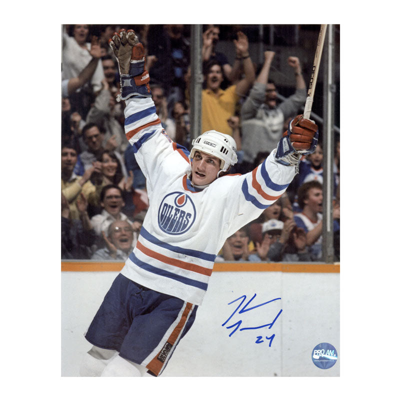 Kevin McClelland Edmonton Oilers White Action "Celebration" Autographed 8x10 photograph
