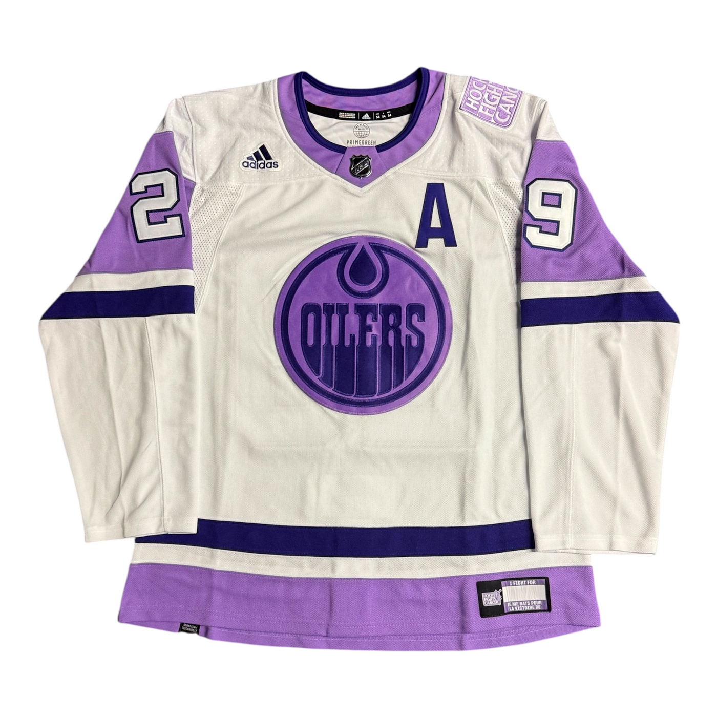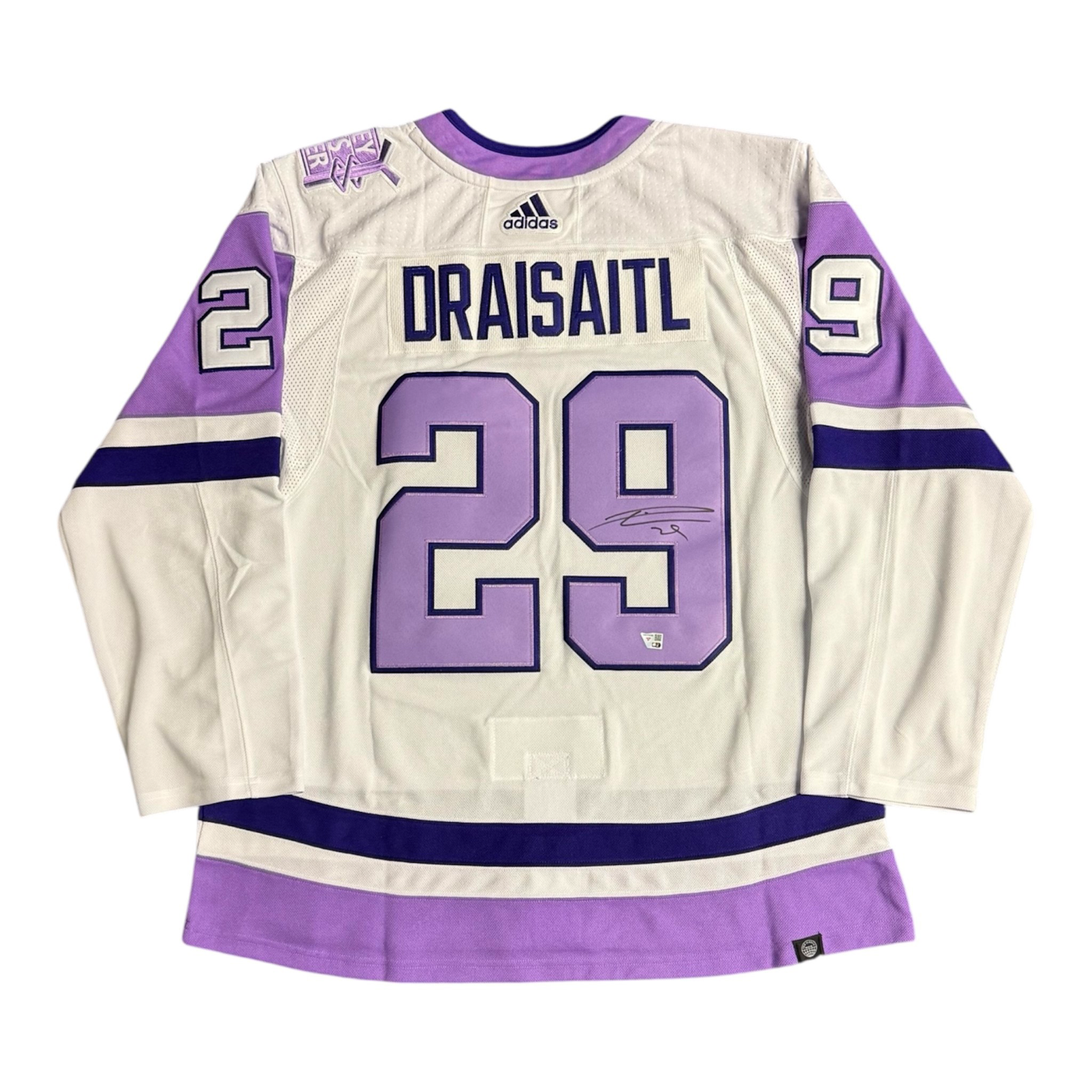 Leon Draisaitl Signed Edmonton Oilers Hockey Fights Cancer White adidas Authentic Jersey