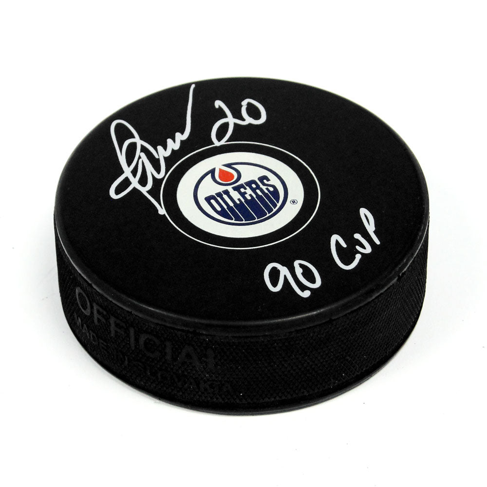 Martin Gelinas Edmonton Oilers Autographed Puck Inscribed