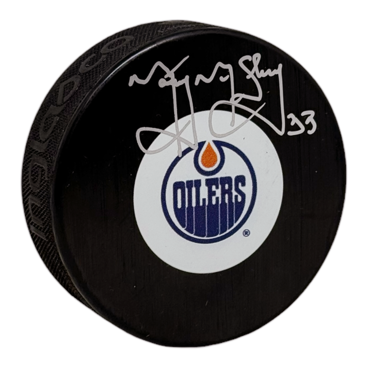 Marty McSorley Signed Edmonton Oilers Puck Medium Size Logo