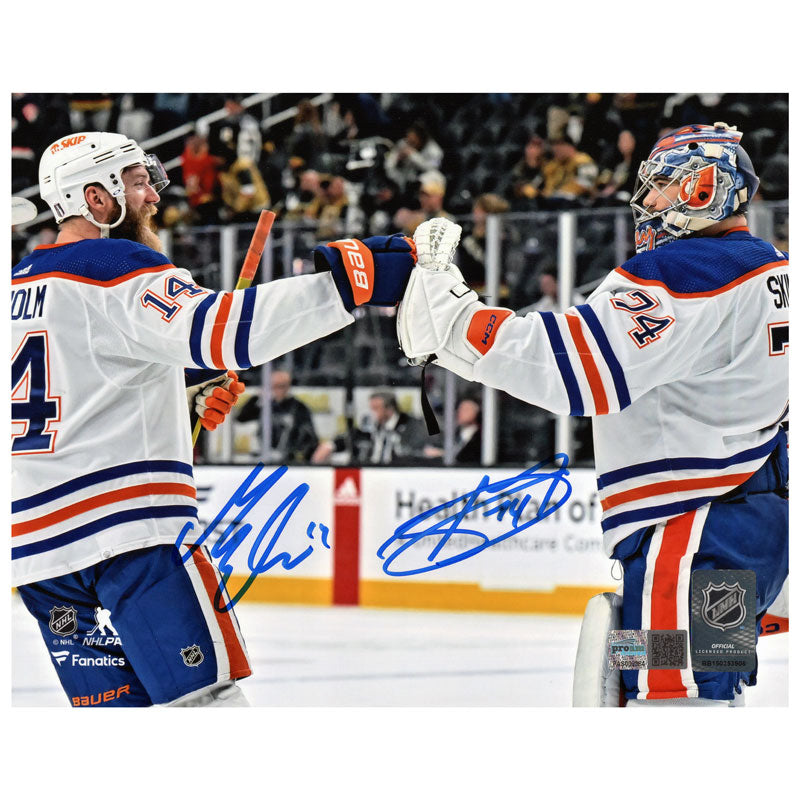 Mattias Ekholm & Stuart Skinner Dual Signed Edmonton Oilers Road Victory 8x10 Photo