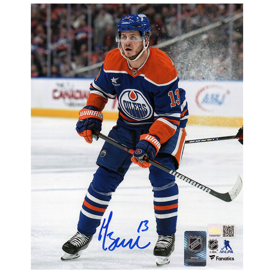 Mattias Janmark Signed Edmonton Oilers Blue Action 8x10 Photo