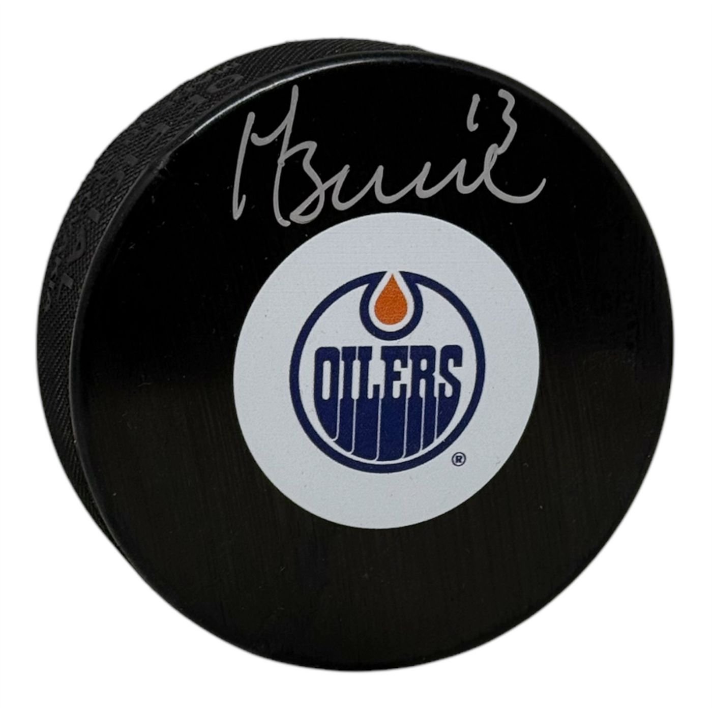 Mattias Janmark Edmonton Oilers Autographed Mid Size Logo Puck