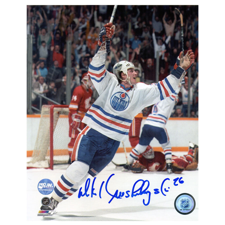 Mike Krushelnyski Edmonton Oilers White Action "Celebration" Autographed 8x10 photograph