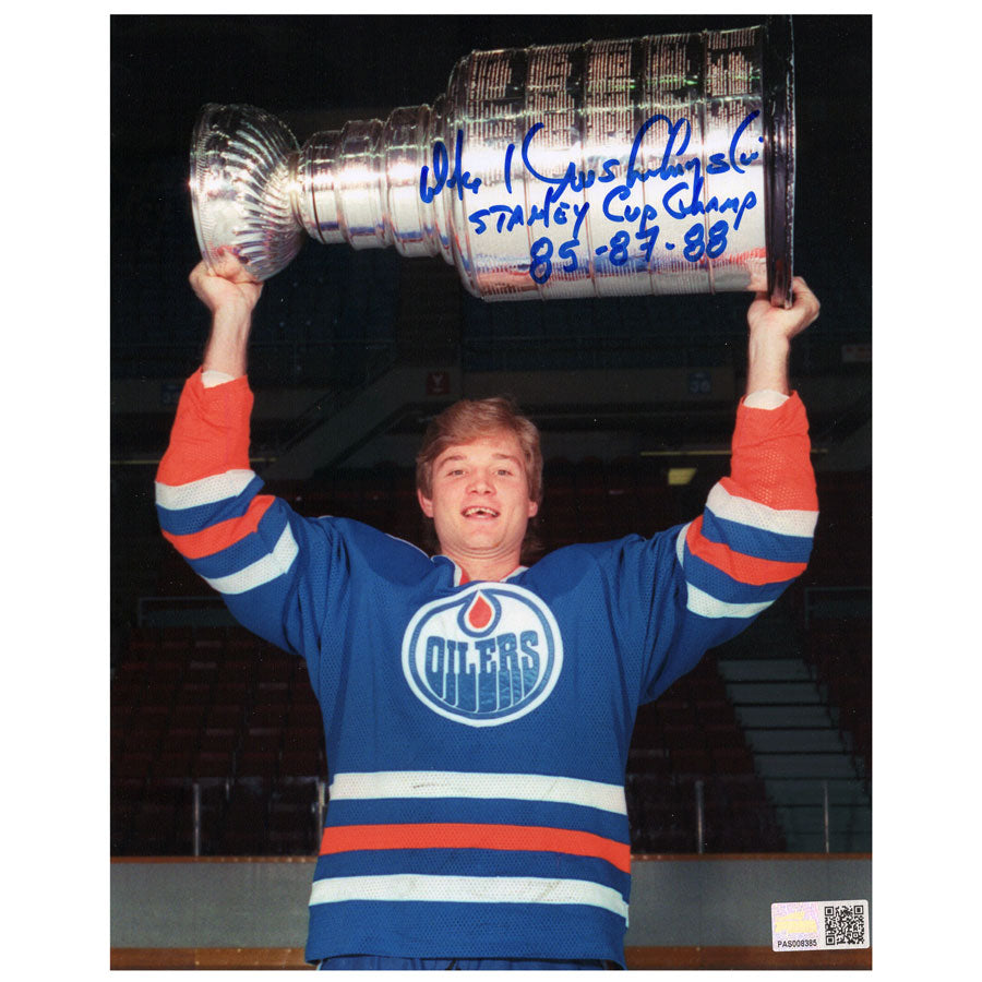 Mike Krushelnyski Signed Edmonton Oilers 8x10 Photo Stanley Cup Overhead Inscribed