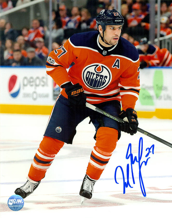 Milan Lucic Edmonton Oilers Orange Action "Looking Left" Autographed 8x10 Photograph.