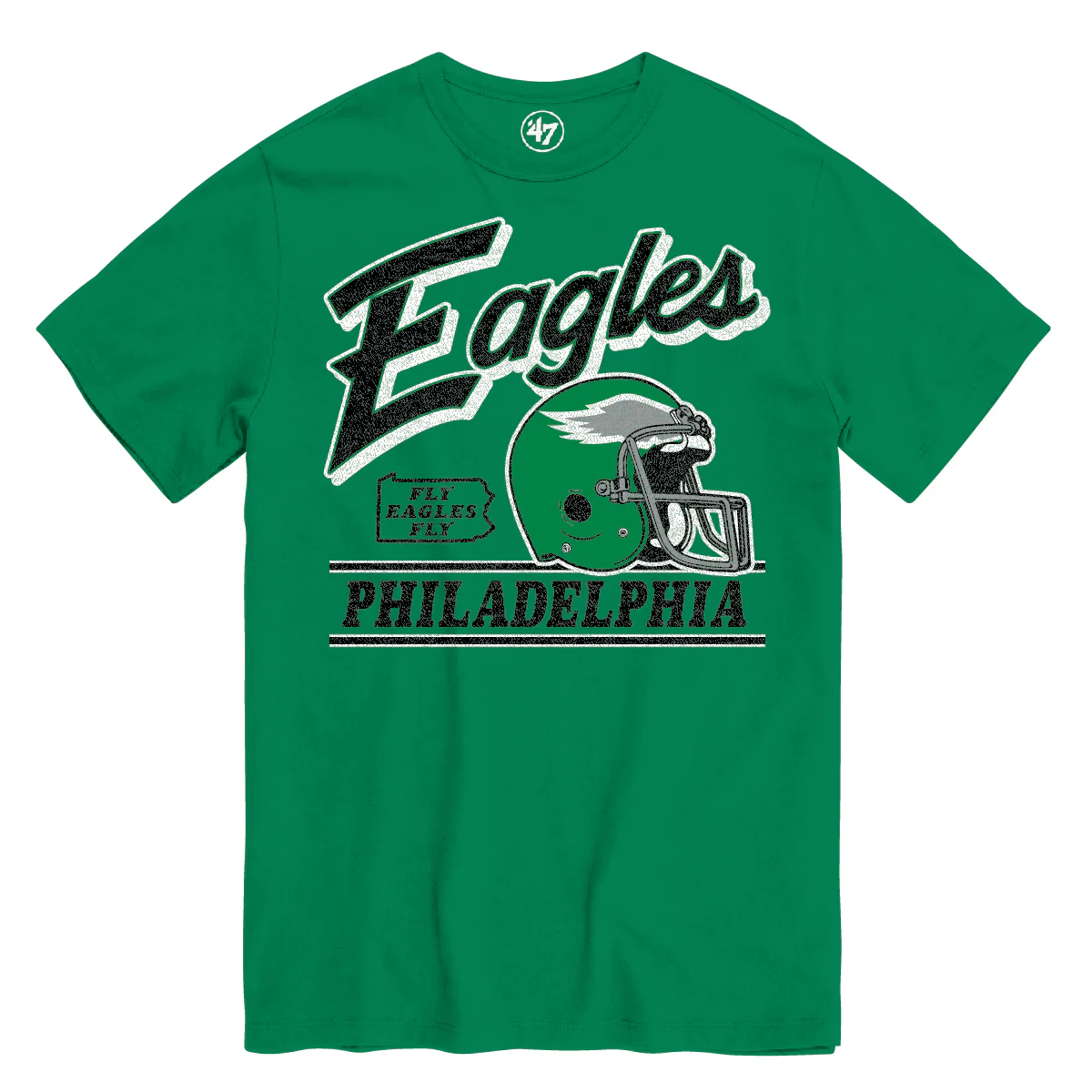The Philadelphia Eagles '47 Fly By tee is a lightweight 100% cotton tee and features distressed retro inspired graphics and a classic crewneck fit.
