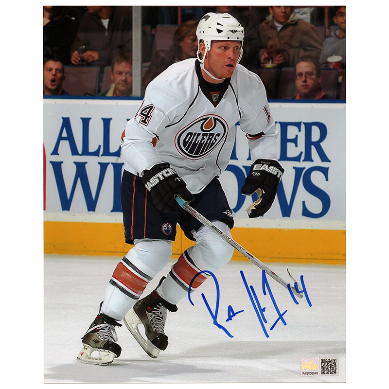 Raffi Torres Edmonton Oilers White Road Action Autographed 8x10 Photo.
