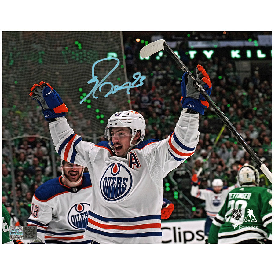 Ryan Nugent-Hopkins Edmonton Oilers Road White Action "Playoff Goal Celebration" Autographed 8x10 Photograph.