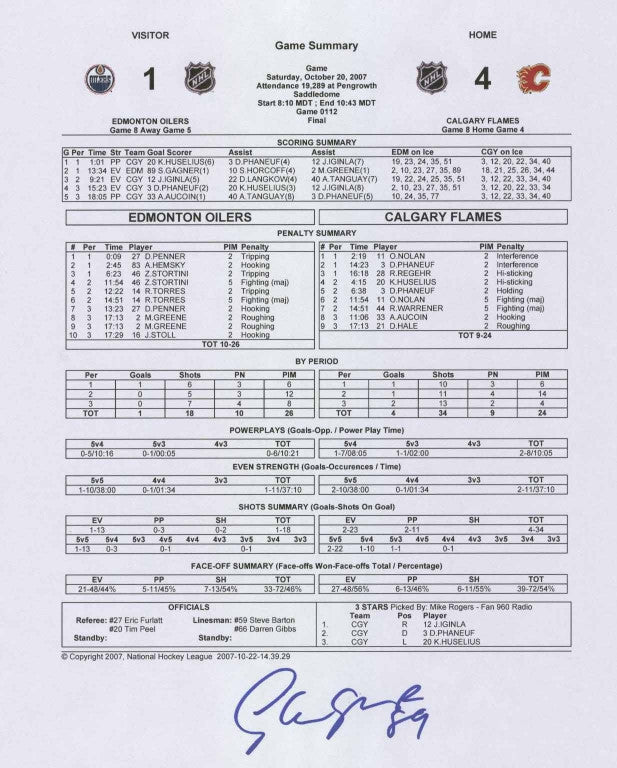 This game sheet was hand signed by Sam Gagner and will deliver with a Pro Am Sports Certificate of Authenticity and hologram.