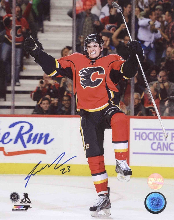 Sean Monahan Calgary Flames Red Action "Celebration" autographed 11x14 photograph.