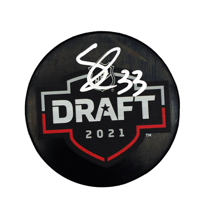 Sebastian Cossa Detroit Red Wings Autographed 2021 Draft Puck