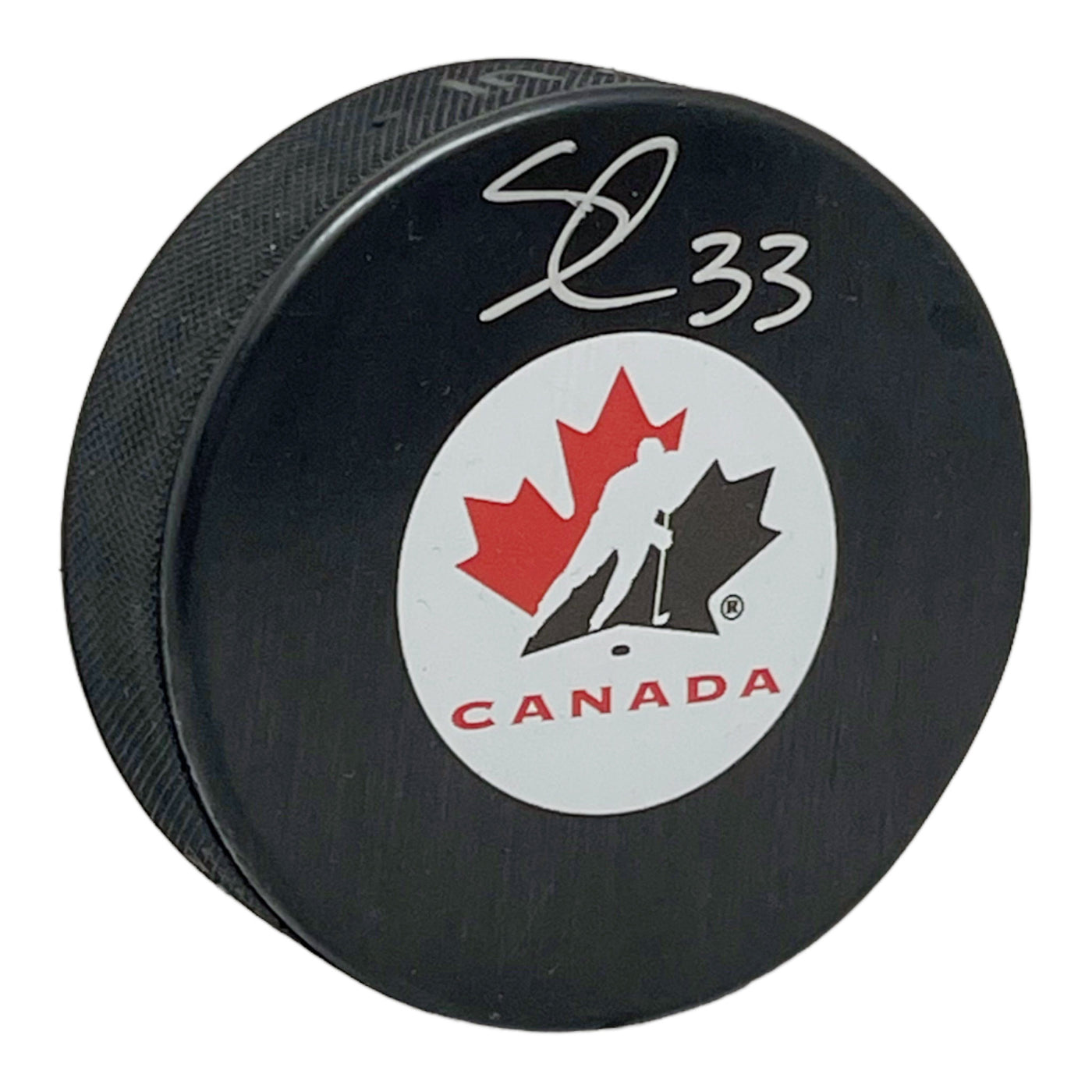 Sebastian Cossa Team Canada Autographed Souvenir Puck