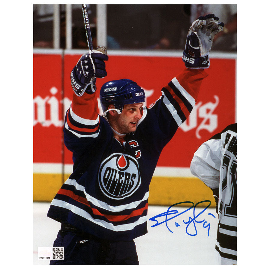Shayne Corson Edmonton Oilers Royal Blue "Goal Celebration" Autographed 8x10 Photo.