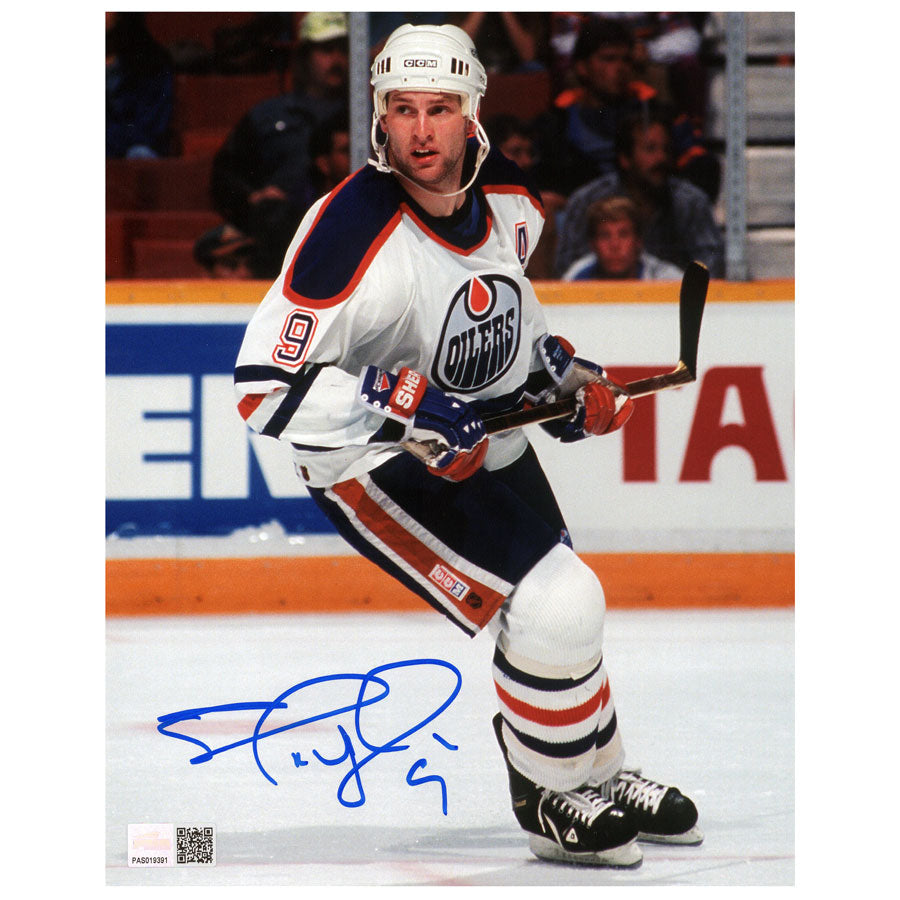 Shayne Corson Edmonton Oilers White Action Autographed 8x10 Photo.