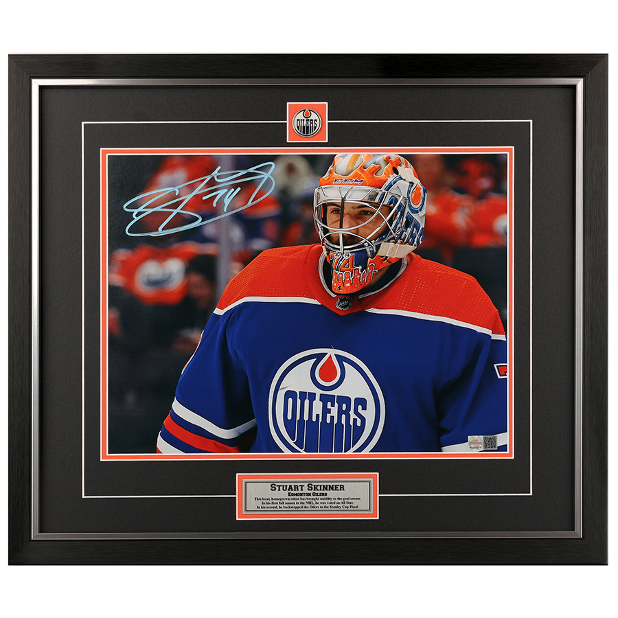Stuart Skinner Signed Edmonton Oilers Home - Mask Closeup - 11x14 Framed Photo